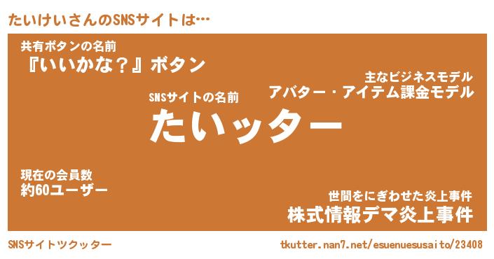 肩書あだ名 | 『たいけいCEO』『たいけい総理大臣』 |