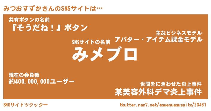 | 肩書あだ名 | 『みつおすずか御曹司』 |