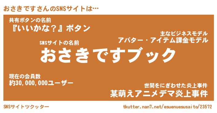 | 男性向けラノベタイトル風あだ名 | 『オサキデスアートオンライン』 |
