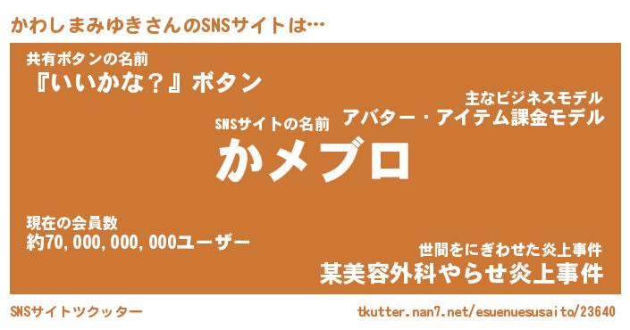 | 肩書あだ名 | 『かわしまみゆき社長』 |