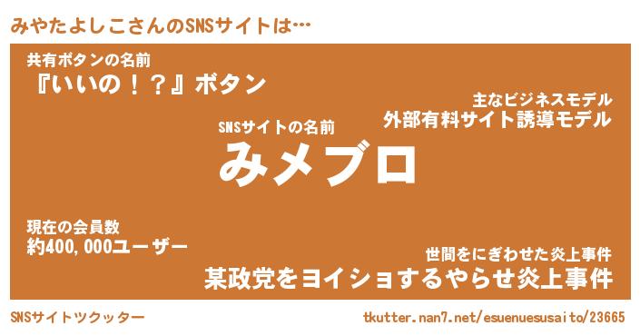 | ヒーロー風カッコイイあだ名 | 『スーパーミヤタヨシコ』『暗黒騎士ミヤ』 |