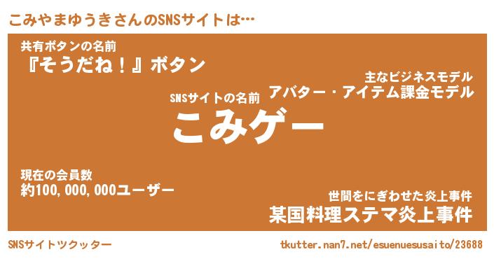 | 肩書あだ名 | 『こみやまゆうき御曹司』 |