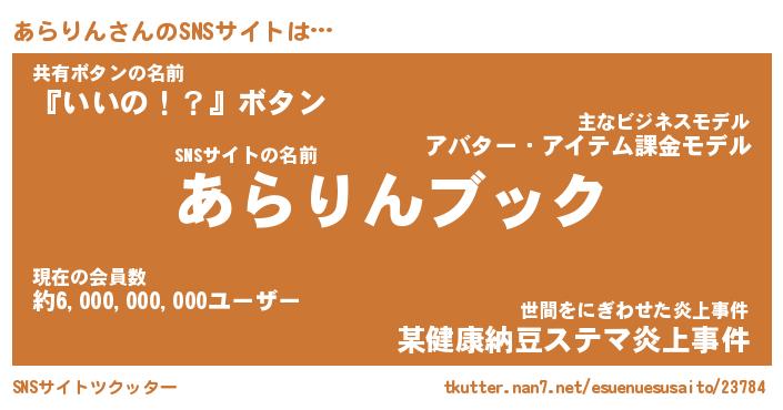 | ヘコむあだ名 | 『あらにゅー』『豆乳』『あら太郎』 |
