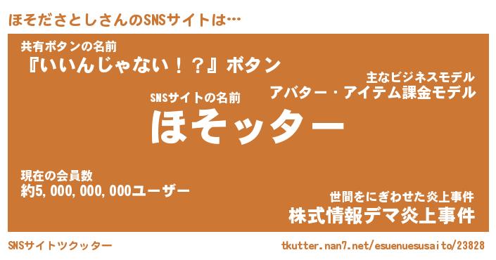 | 胡散臭い通販商品みたいなあだ名 | 『億万長者になれる霊験あらたかなお札…その名も「ほそださとし」』 |