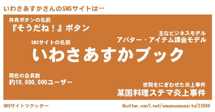 | 胡散臭い通販商品みたいなあだ名 | 『億万長者になれる霊験あらたかなお札…その名も「いわさあすか」』 |