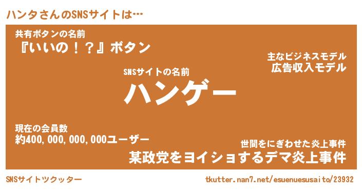 | 胡散臭い通販商品みたいなあだ名 | 『必ず成功する霊験あらたかなお札…その名も「ハンタ」』 |