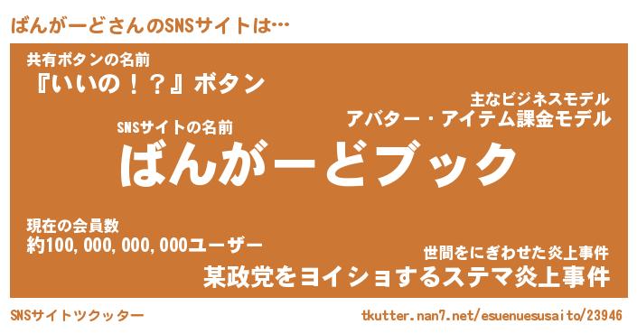| ファンタジー風あだ名 | 『バンフェル』『エターナルバンガードー』 |