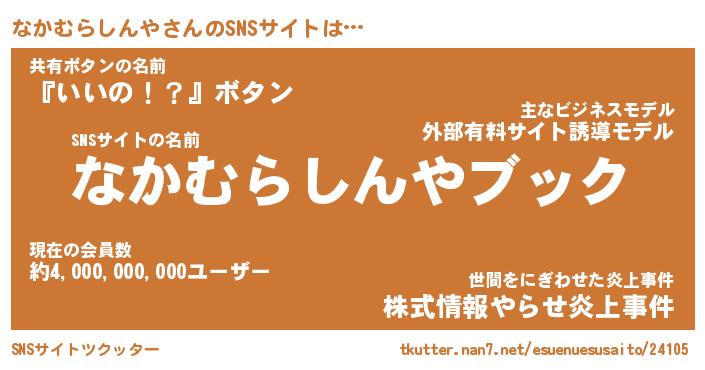 | ツイッター | なかむらしんやさんのツイッターID『namakemono_kun』 |