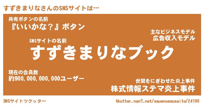 | 胡散臭い通販商品みたいなあだ名 | 『億万長者になれるブレスレット…その名も「すずきまりな」』 |