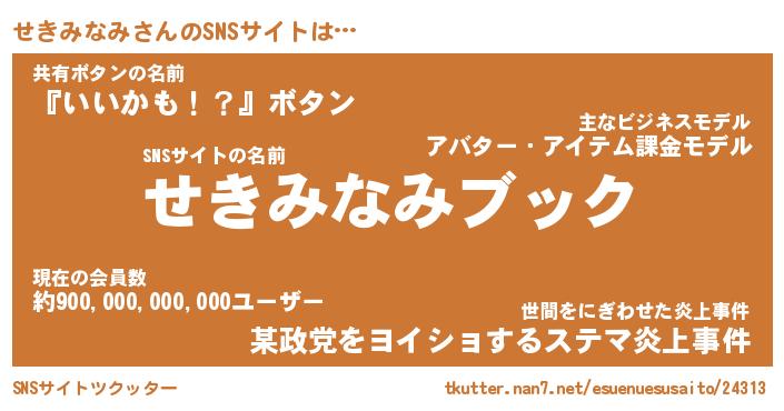 | 胡散臭い通販商品みたいなあだ名 | 『億万長者になれるブレスレット…その名も「せきみなみ」』 |