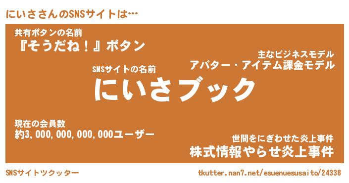 | 男性向けラノベタイトル風あだ名 | 『ニイサアートオンライン』 |
