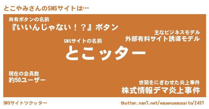 | 胡散臭い通販商品みたいなあだ名 | 『億万長者になれる水晶球…その名も「とこやみ」』 |