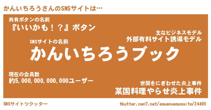 | 胡散臭い通販商品みたいなあだ名 | 『億万長者になれるブレスレット…その名も「かんいちろう」』 |