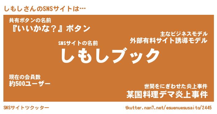 | 男性向けラノベタイトル風あだ名 | 『シモシアートオンライン』 |