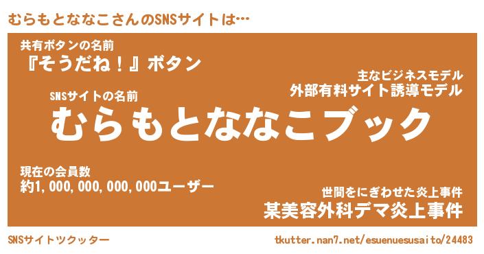 | 胡散臭い通販商品みたいなあだ名 | 『億万長者になれる霊験あらたかなお札…その名も「むらもとななこ」』 |