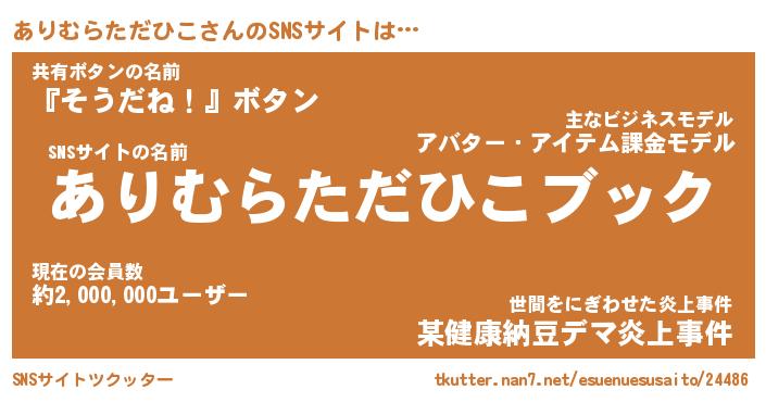 | 肩書あだ名 | 『ありむらただひこ店長』 |
