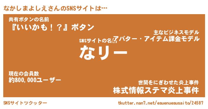 | 意味不明あだ名 | 『ペロリンなかしまよしえ』 |