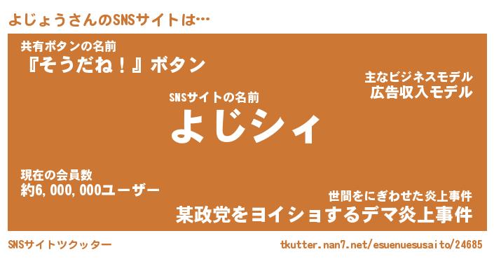 | 男性向けラノベタイトル風あだ名 | 『よじょうの憂鬱』 |