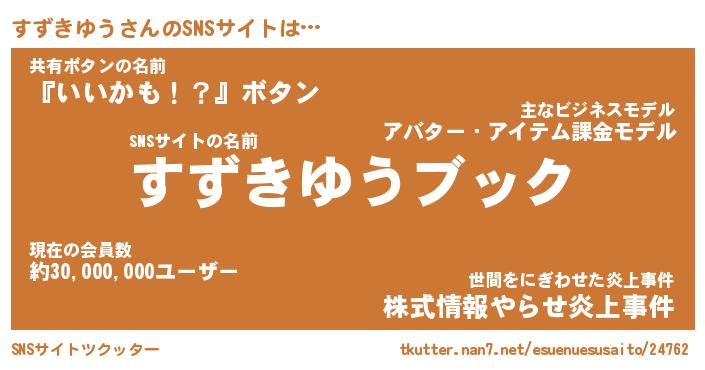 | ファンタジー風あだ名 | 『スズフェル』『エターナルスズキユウー』 |
