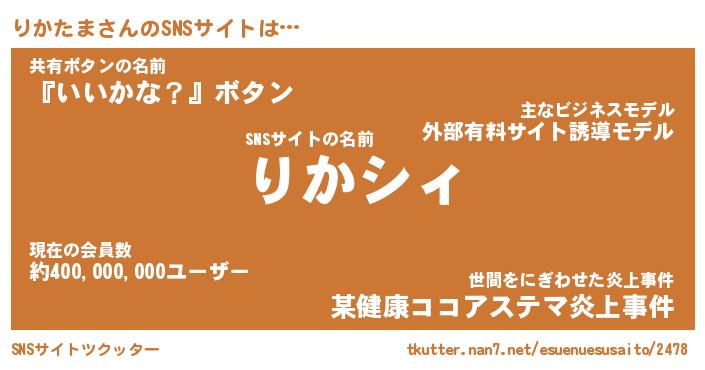 | 胡散臭い通販商品みたいなあだ名 | 『必ず成功するブレスレット…その名も「りかたま」』 |