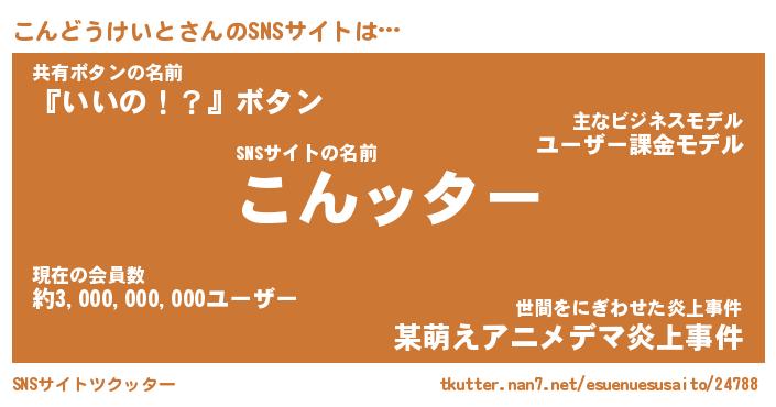 | 胡散臭い通販商品みたいなあだ名 | 『億万長者になれるブレスレット…その名も「こんどうけいと」』 |