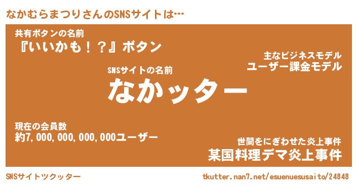 | ツイッター | なかむらまつりさんのツイッターID『fukuyoka_idle』 |
