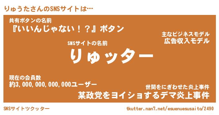 | 胡散臭い通販商品みたいなあだ名 | 『億万長者になれる水晶球…その名も「りゅうた」』 |