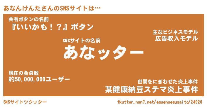 | 胡散臭い通販商品みたいなあだ名 | 『億万長者になれる霊験あらたかなお札…その名も「あなんけんた」』 |