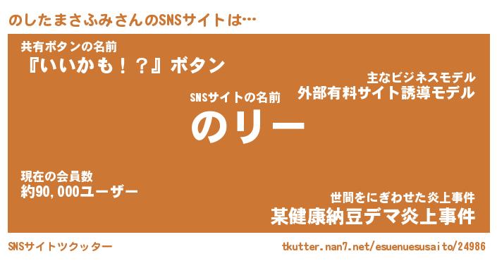 | 肩書あだ名 | 『のしたまさふみ店長』 |
