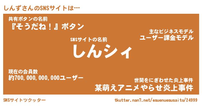 | 男性向けラノベタイトル風あだ名 | 『しんずの憂鬱』 |