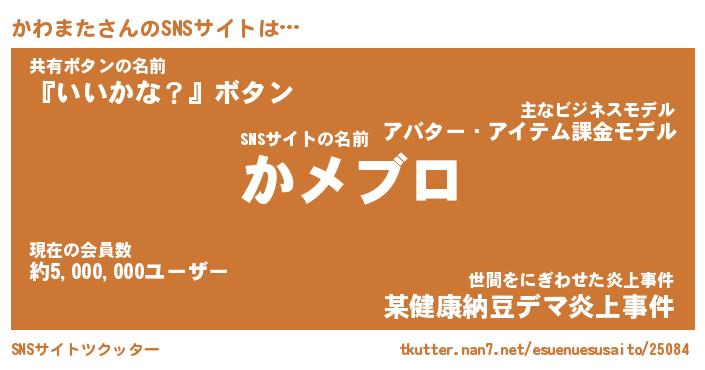 | 意味不明あだ名 | 『ペロリンかわまた』『永久保存かわまた』 |