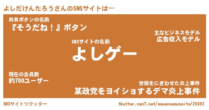 | 肩書あだ名 | 『よしだけんたろうCEO』 |