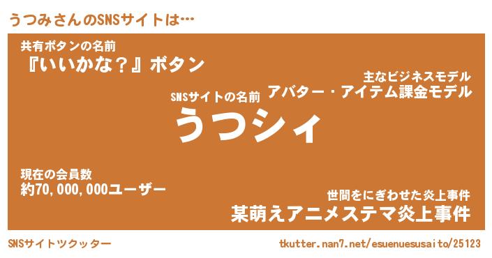 | ファンタジー風あだ名 | 『ウツフェル』『エターナルウツミー』 |