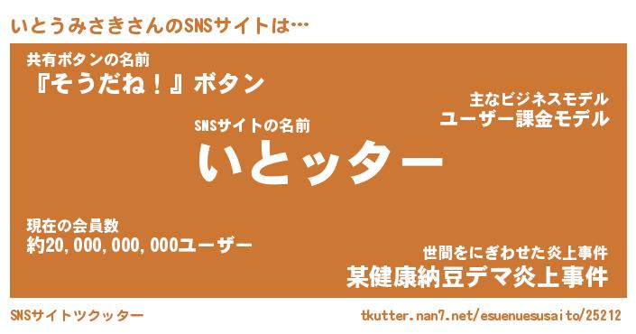 | ポケモン風あだ名 | 『イトチュウ』『イトウダネ』 |
