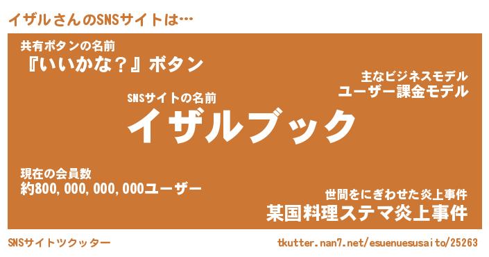| ヘコむあだ名 | 『イザにゅー』『豆乳』『イザお』 |