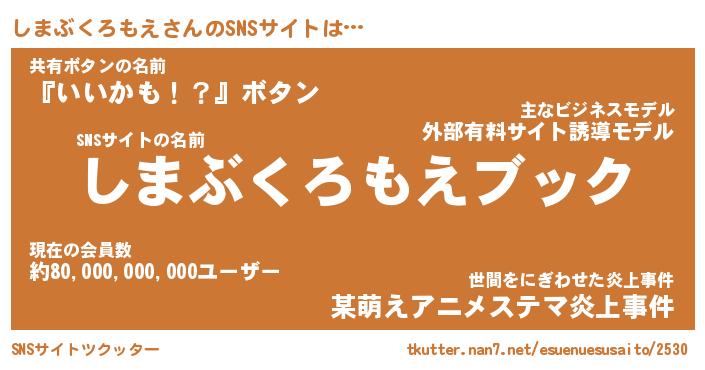 | 男性向けラノベタイトル風あだ名 | 『シマブクロモエアートオンライン』 |