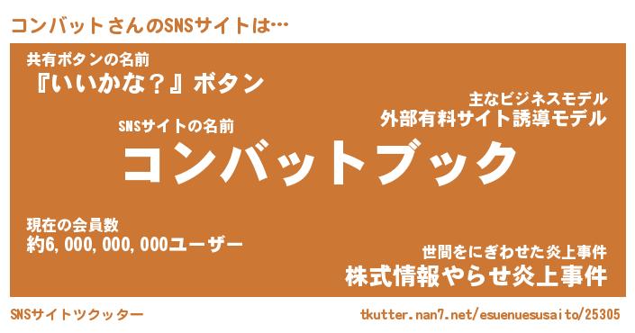 | ツイッター | コンバットさんのツイッターID『namakemono_star』 |