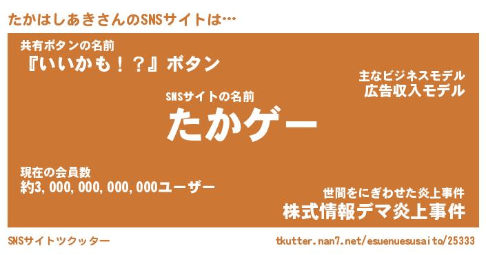 | ファンタジー風あだ名 | 『タカフェル』『ファントムタカス』 |