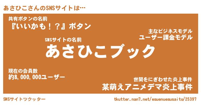 | 男性向けラノベタイトル風あだ名 | 『アサヒコアートオンライン』 |
