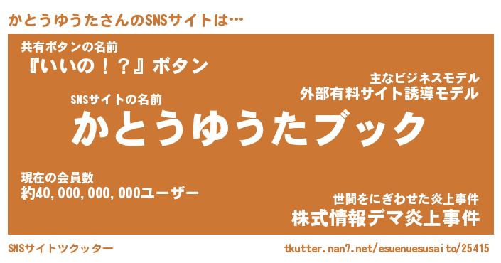 | 胡散臭い通販商品みたいなあだ名 | 『億万長者になれる霊験あらたかなお札…その名も「かとうゆうた」』 |