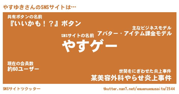 | 肩書あだ名 | 『やすゆき御曹司』『やすゆき国家主席』 |