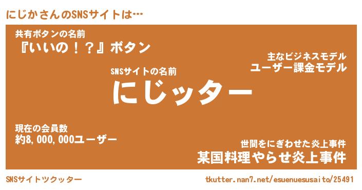 | 肩書あだ名 | 『にじか社長』『にじか国家主席』 |