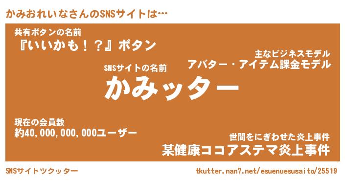 | 胡散臭い通販商品みたいなあだ名 | 『億万長者になれるブレスレット…その名も「かみおれいな」』 |