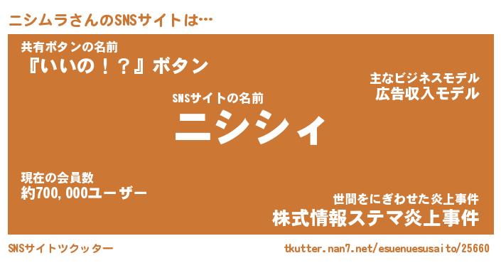 | ファンタジー風あだ名 | 『ニシフェル』『エターナルニシムラー』 |