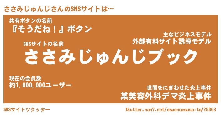| 胡散臭い通販商品みたいなあだ名 | 『億万長者になれる霊験あらたかなお札…その名も「ささみじゅんじ」』 |