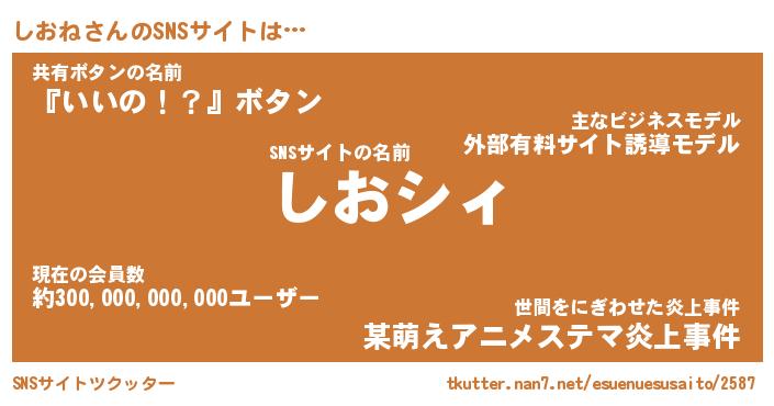 | 男性向けラノベタイトル風あだ名 | 『しおねの憂鬱』 |