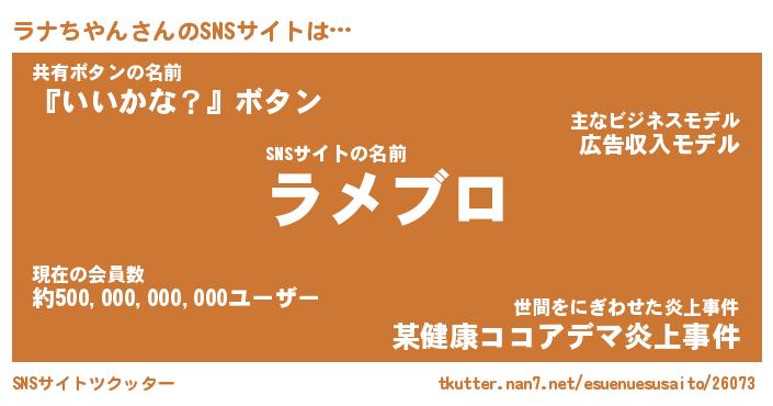 | ヘコむあだ名 | 『ラナにー』『レバニラ』 |