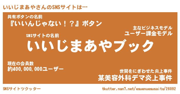 | 男性向けラノベタイトル風あだ名 | 『イイジマアヤアートオンライン』 |