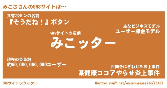 | 胡散臭い通販商品みたいなあだ名 | 『億万長者になれる水晶球…その名も「みこさ」』 |