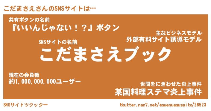 | ファンタジー風あだ名 | 『コダフェル』『エターナルコダマサエー』 |